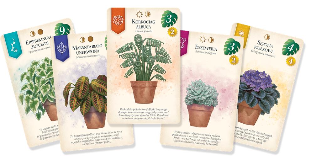 Przebieg tury jest prosty – wybierz zestaw składający się z karty i żetonu i umieść go w swoim domu. Posadź wyrośnięte rośliny w punktowanych doniczkach, zanim ubiegną Cię przeciwnicy, i wygraj grę! Dzięki kartom celów, scenariuszom i wyzwaniom, możliwych kombinacji jest więcej niż gatunków roślin w ogrodzie botanicznym!